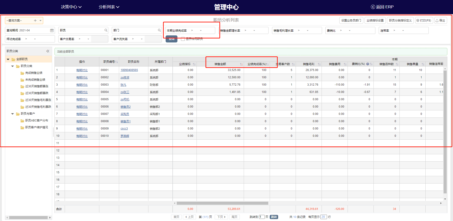 来肯通过职员管理中心,智能化分析员工数据,通过设置业绩指标来提升人效,通过费销比来控制成本,优化人员结构,严卡销售费用。