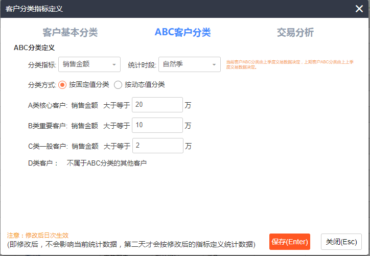 首先,来肯帮助企业按照客户的销售贡献,结合二八原则进行分类,将客户分为A类核心客户、B类重要客户、C类一般客户、D类其他客户。