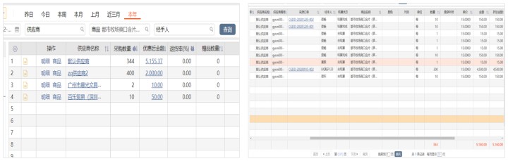 ●供应商采购分析:轻松对比不同供应商的采购数量和采购价格,掌握供应商情况,还可清楚看到商品的成本变动情况,防止在采购环节出现猫腻。